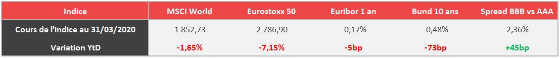 - 19 Mars – Coronavirus : La Banque Centrale Européenne annonce des rachats de titres pour 750 milliards d’euros pour palier à une nouvelle crise de la zone euro. Ce montant est inédit.